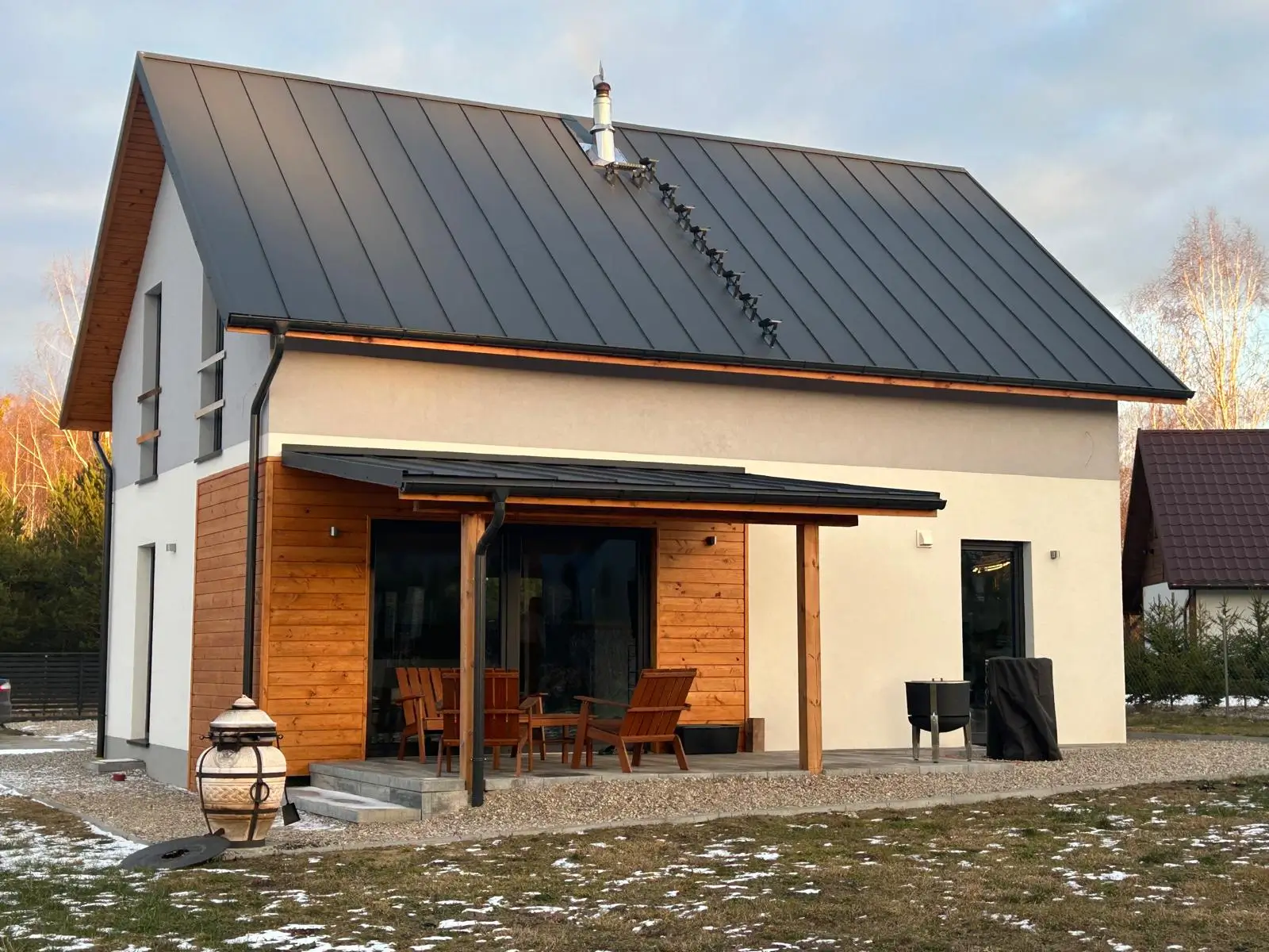 Dom szkieletowy z 2023 roku o powierzchni 112 m², który wyróżnia się nie tylko nowoczesnym designem, ale też innowacyjnym podejściem do ogrzewania. Ten budynek jest w pełni ogrzewany promiennikami ciepła, co zapewnia równomierne rozprowadz...